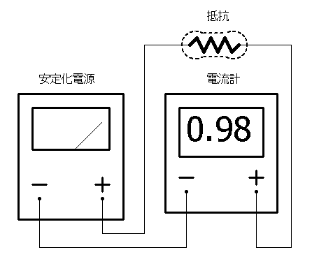 赤 テスターリード +プラスに接続 黒 テスターリード -マイナスに接続