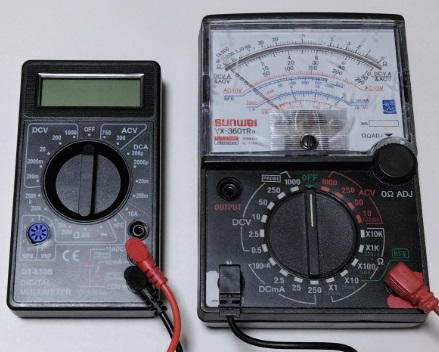 | 電子工作するならテスターは必須です・・・ 「直流電圧・交流電圧測定」・「直流電流測定」・「抵抗値測定」やトランジスタのHFEなどを測定できるテスターもあります。 テスターは「アナログテスター」と「デジタルテスター」があります。 最近はデジタルテスターが主流となっています。 (理想はデジタルテスターとアナログテスターがあると便利です。) ![]() 最初は、お手軽に激安デジタルテスターでOKです。 おすすめのデジタルテスターはオートレンジ機能が無い「DT-830B」です。(2026年1月現在) オートレンジのデジタルテスターは反応が(T_T)です(高級デジタルテスターは気になりませんが...) 最大のポイントは「壊れても、まあいいか~」ですみます。(私は年間1~2台くらい壊します) 測定精度のバラツキも気になりません。 数台あると便利です。 ![]() |