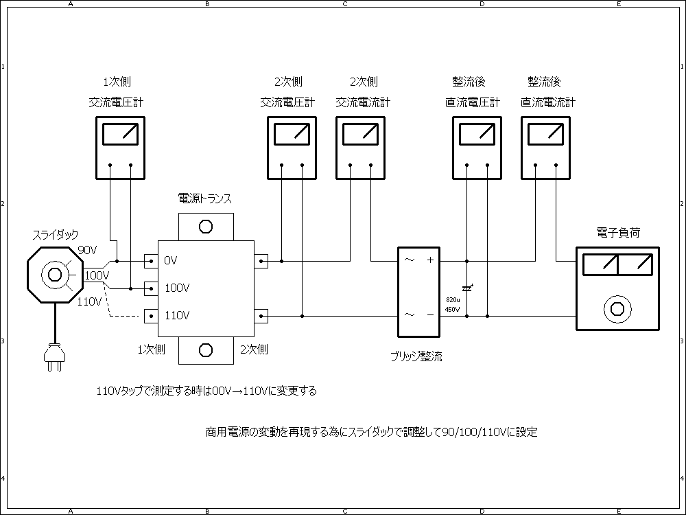 商用電源(AC100V)電圧変化による2次側電圧変化が気になるので測定してみました。