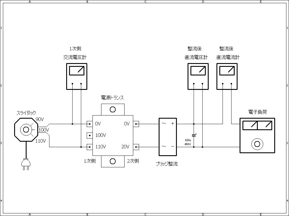 仕様 商用電源 AC 90V~110V (某メーカーの仕様と同じAC90V~AC110V) 可変電圧 0V~13V 制限電流 10~200mA 電源トランス方式 今回の授業料は LM358×2個(破裂) そんなもんですねぇ~ 電源トランス 商用電源 AC 90V~110V変化した時に 電源トランス(ジャンク電源トランス)2次側の出力電圧変化を調べます。 電源トランス仕様 一次側 0V-100V-110V 二次側 0-20V 測定方法 ![]()
