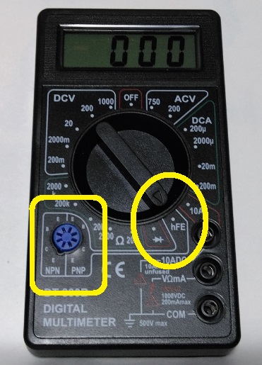 トランジスタHFE測定 ダイオード順方向電圧測定 Vf 注意 直流電流10Aのレンジで電流は測定しないこと 大電流を流すと内部パターンが燃えます |